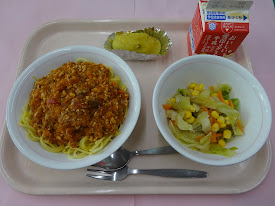 1月24日(金)牛乳・スパゲッティーミートソース・コーンサラダ・スイートポテト